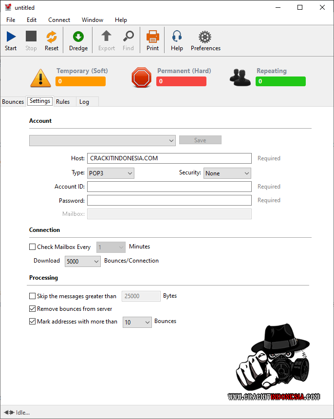 - Extraction of bounces from text drops, text file drops and clipboard.