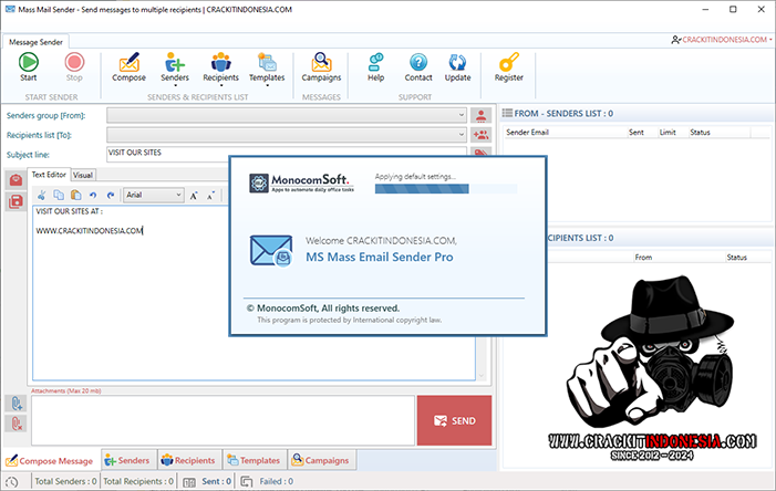 MS Mass Email Sender Pro is the most precise and easy-to-use email markerting software available online. This email blaster sends targeted bulk emails, newsletters & promotional emails directly to recipients’ inboxes. Its core features include managing sender groups, mailing lists, email templates & campaigns.