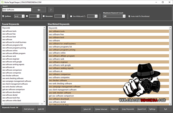 You can then further search alphabetically with two levels of suffixes. Next you can also search on recursive as shown. Reap thousands of keywords in matter of seconds. The auto add option lets you create a shortlist of keywords on auto.