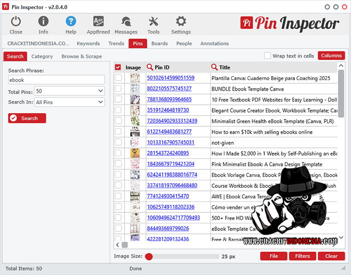 With Pin Inspector you can extract 14+ data points for every Pinterest board found.