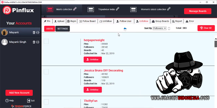- Automatically follow, unfollow, like and comment. These features let you get rid of all the annoying procedures of liking, commenting, and reacting on Pinterest.