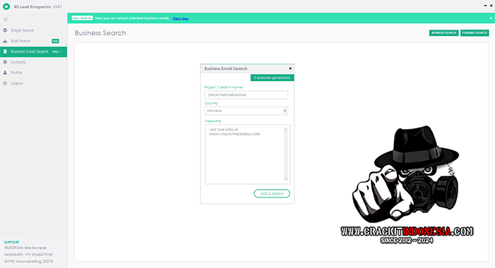 Extracts leads real time from web for your search keyword. - Multi PC Access
