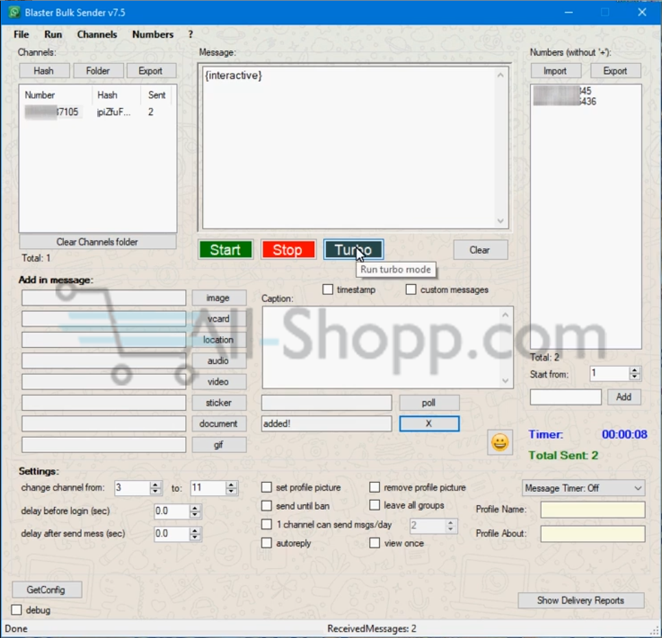 – in Turbo mode software not show numbers on which not sent messages