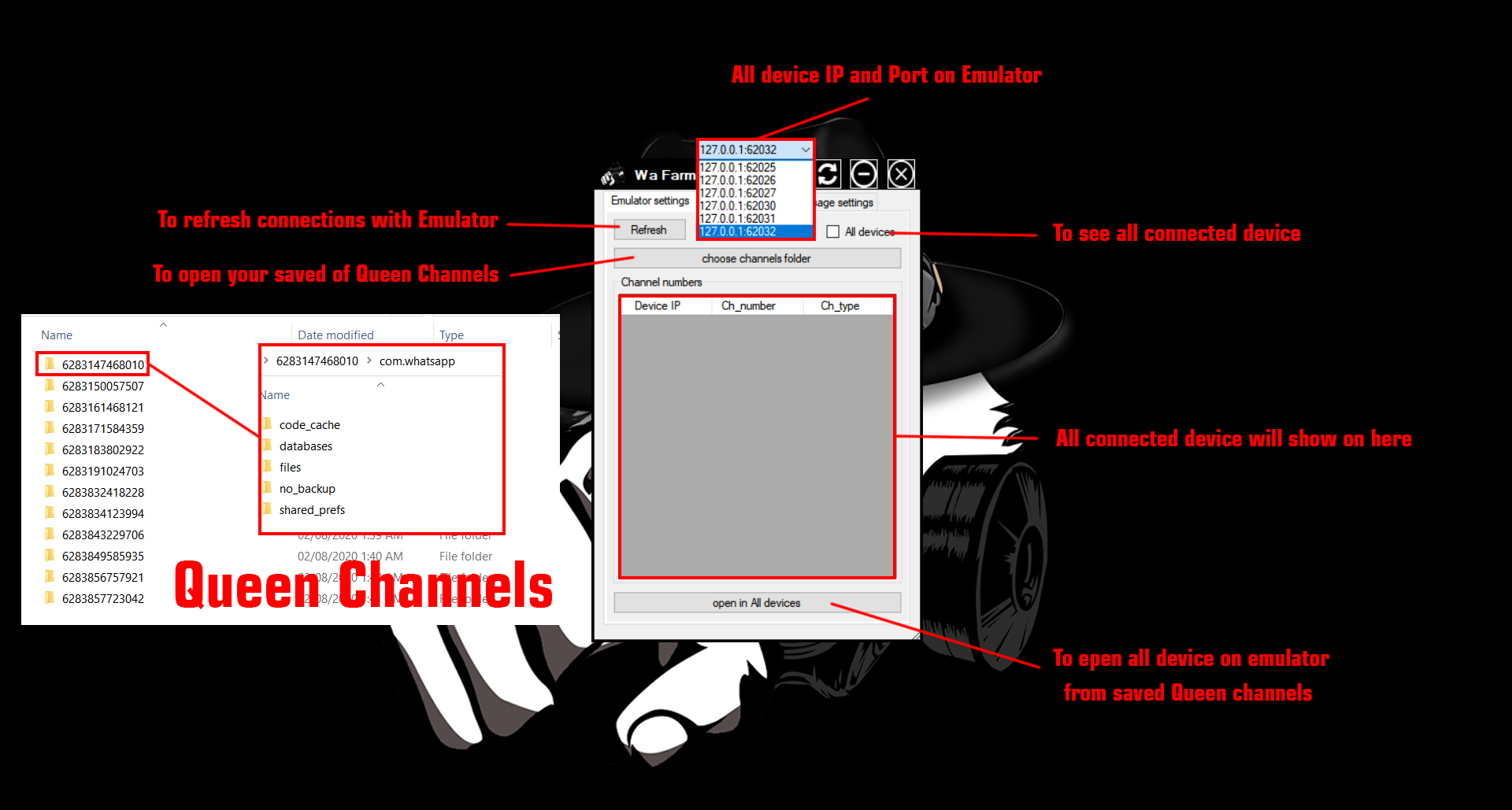 And to solve that problem, we built a simple tools can make all channels will send messages with two-way direction (send and receive messages from all opened emulators).