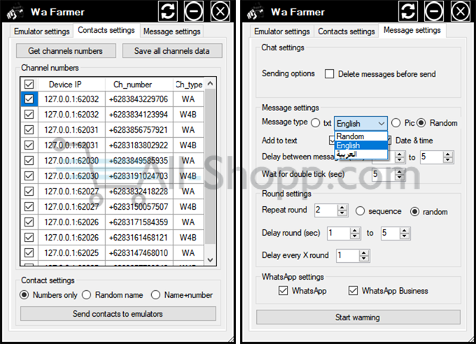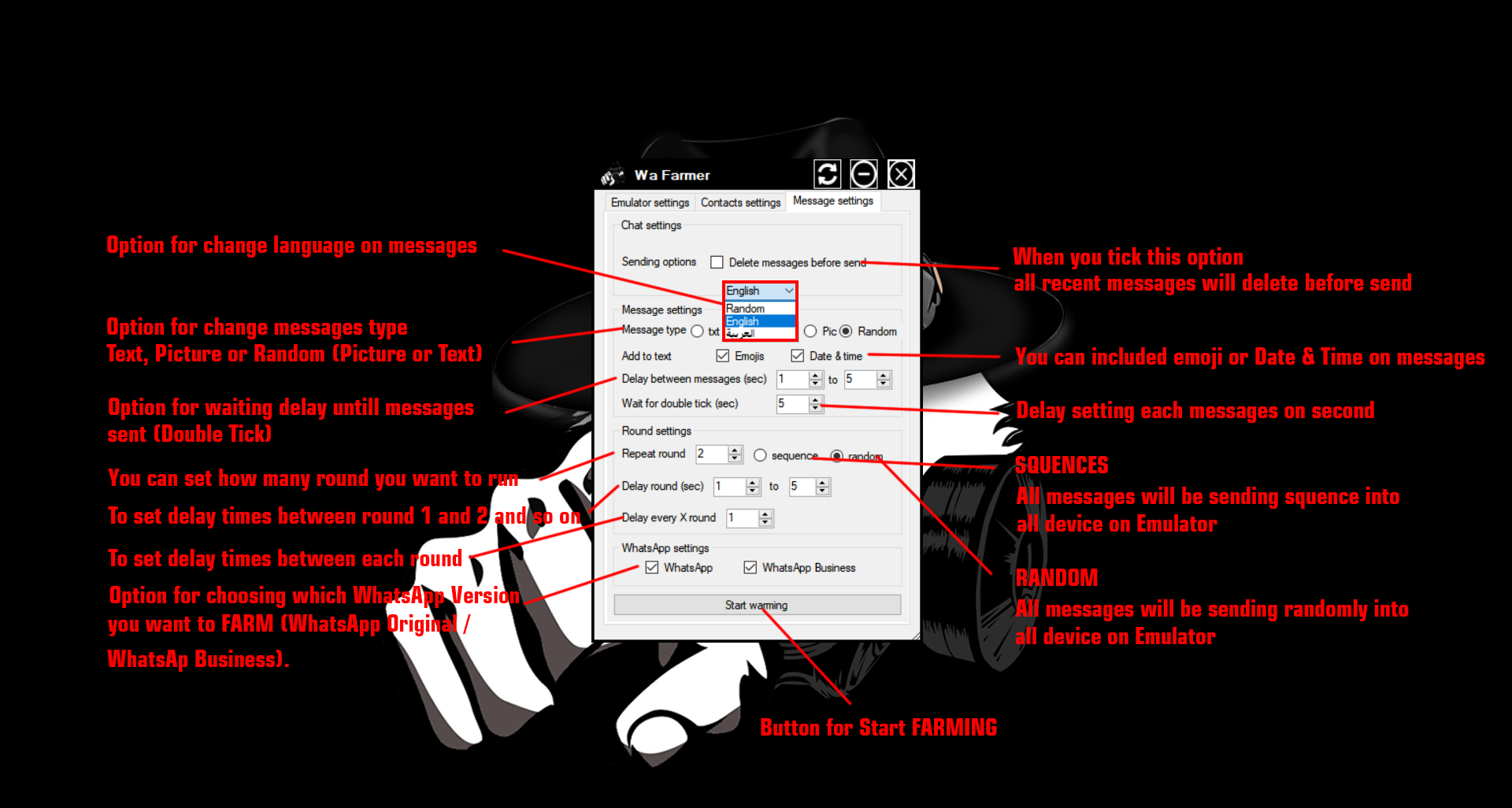 - Send random messages (text – pics – both).