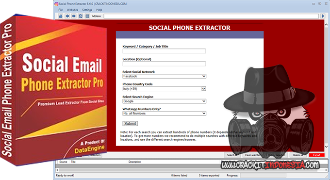 Social Phone Extractor is a powerful and innovative program able to search and capture profile pages, posts and articles present on the most important social networks such as Linkedin, Facebook, Twitter and Instagram and then capturing and extrapolating telephone numbers (of companies, professionals and individuals) . The search takes place at 360° within the pages of the various social networks and within the posts created by users.