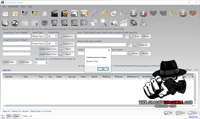 • Fully socket implemented. No webbrowser / WYSIWYG bot here. TumblingJazz is a lean, mean fighting machine *Create accounts uses a browser rendered to memory for high success rate