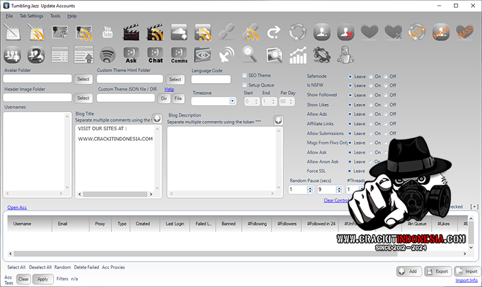 Using TumblingJazz it is a walk in the park to generate tonnes of traffic to your Tumblr blog and then onto your money sites. Due to the multi capacity, multi-threaded, raw socket implementation you can really let the bot rip, doing what it does best. All hands free. Set it up, schedule it, repeat it. Site back and watch the traffic FLOOD in.
