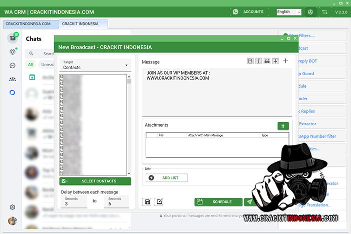 Send WhatsApp Messages to Contact ,Numbers, Labels, Unsaved Numbers and Groups with message and any type of attachments. - Message Delay Management